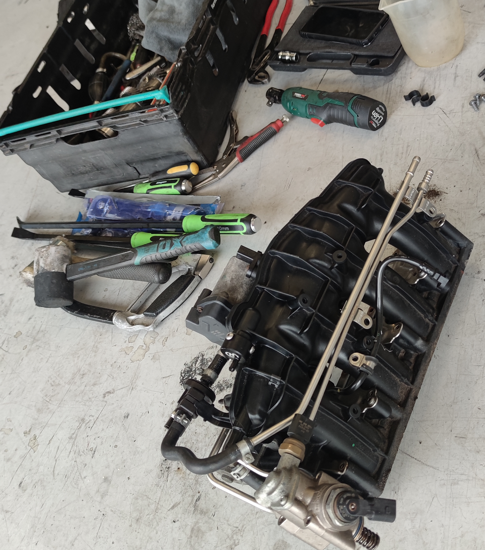 As soon as Audrey was back in the garage we set about diagnosing the problem. Luckily for us we had our "man of the hour" Elliot with us who had already helped us to save our season more than once this year. With the help of our garage neighbours TSR Performance and we discovered that we had a faulty crank and noc sensors. Elliot immediately set to work dismantling the inlet manifold that these parts hide underneath, while we sourced the replacements from Adam who has saved our race day more than once this year, TT Centre Parts (thanks for all your help and advice throughout the season). The rest of the team helping Elliot as much as we could, and also getting our usual race preparations completed to give us the best chance of being ready to go again when we were called to the assembly area.